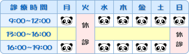 休診日 : 火曜全日、日曜の午後